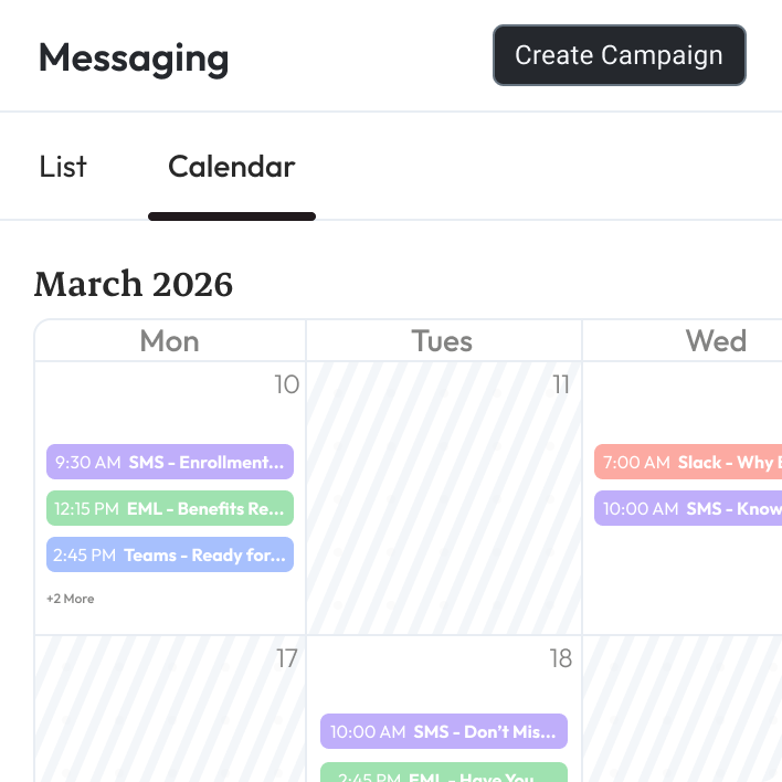 Send scheduled emails and SMS messages that drive clicks — not confusion. Perfect for nudges, reminders, and OE countdowns.